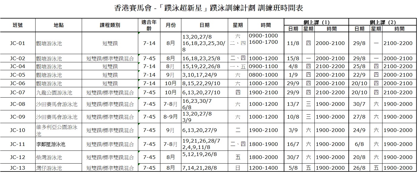1.) 運動及競賽委員會會正式通知各屬會及合資格的蹼泳教練,該年度將會舉辦的訓練班詳情。